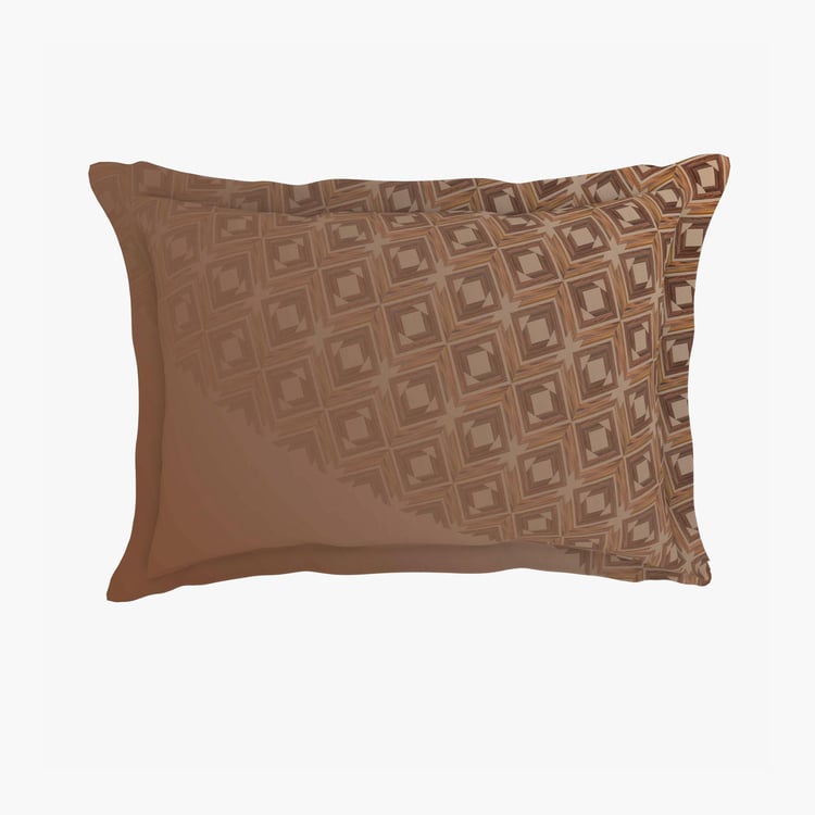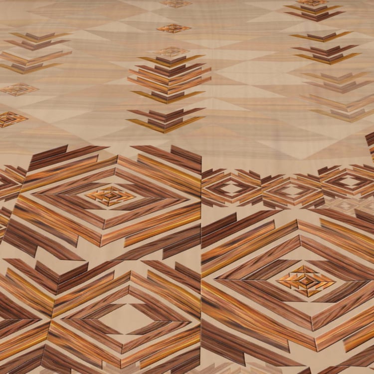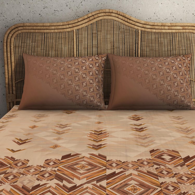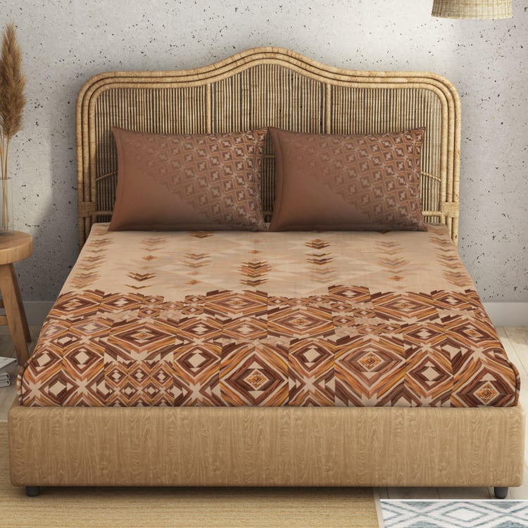 SPACES Urban Organic Brown Printed Cotton Large Bedsheet Set - 3Pcs