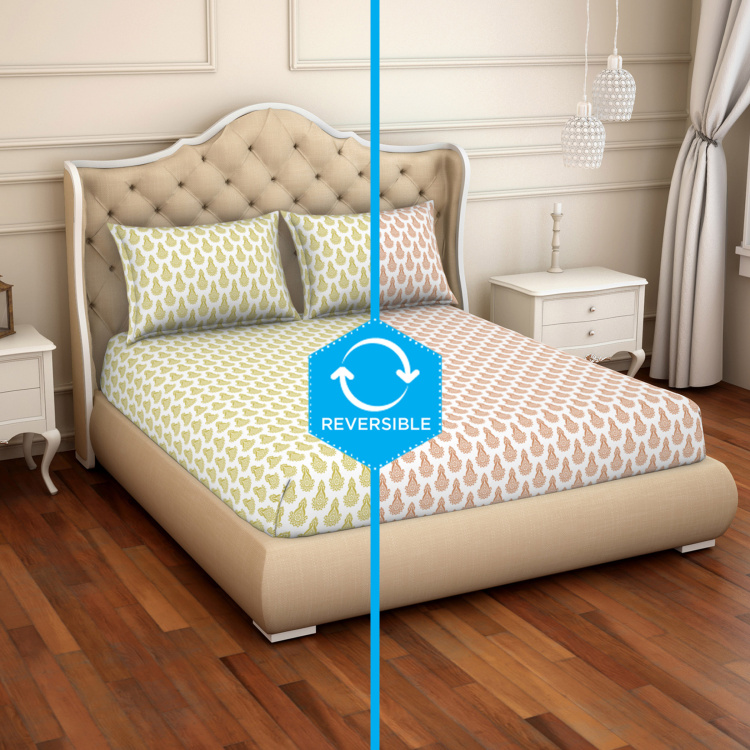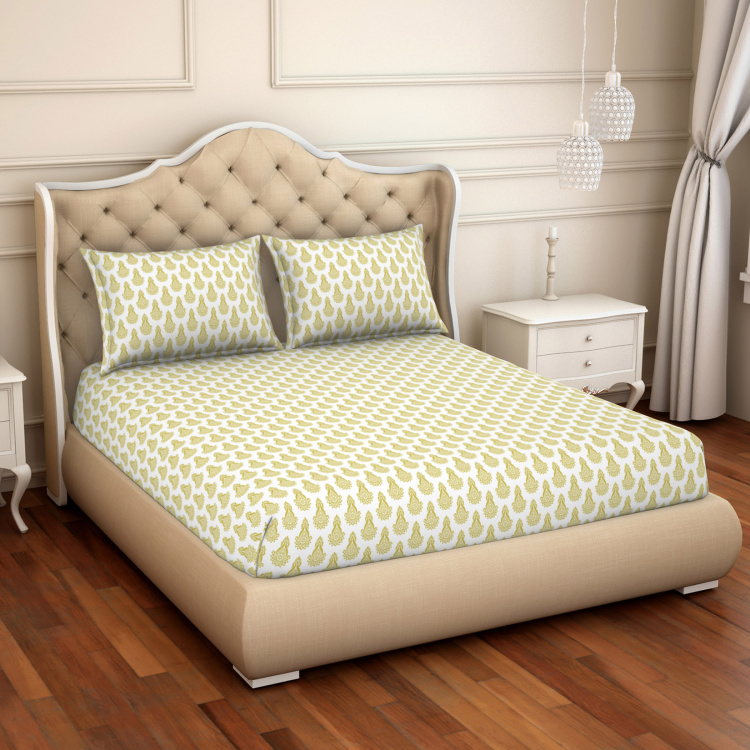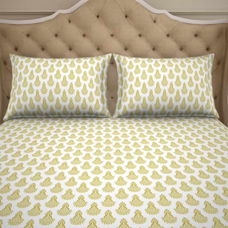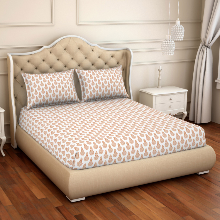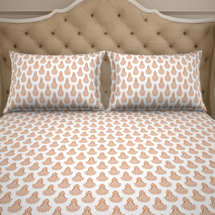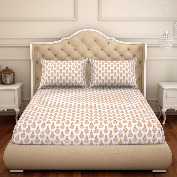 SPACES Welspun Smart Cotton Printed 3-Piece Double Bedsheet Set - 2.29 m x 2.74 m