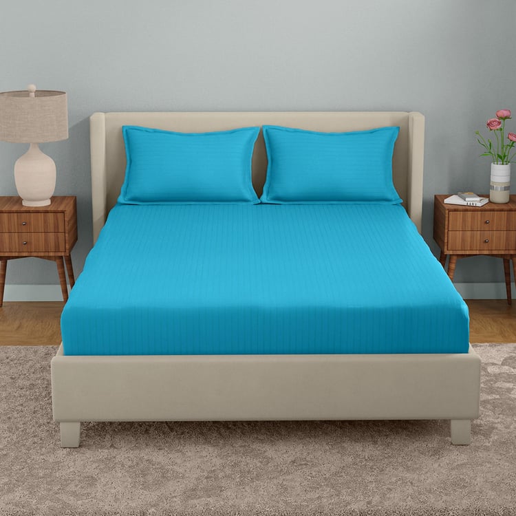 STELLAR HOME Prism Satin Cotton 210TC Stripes 3Pcs King Fitted Bedsheet Set