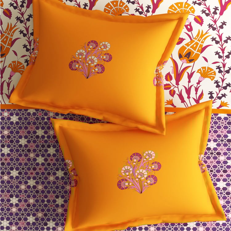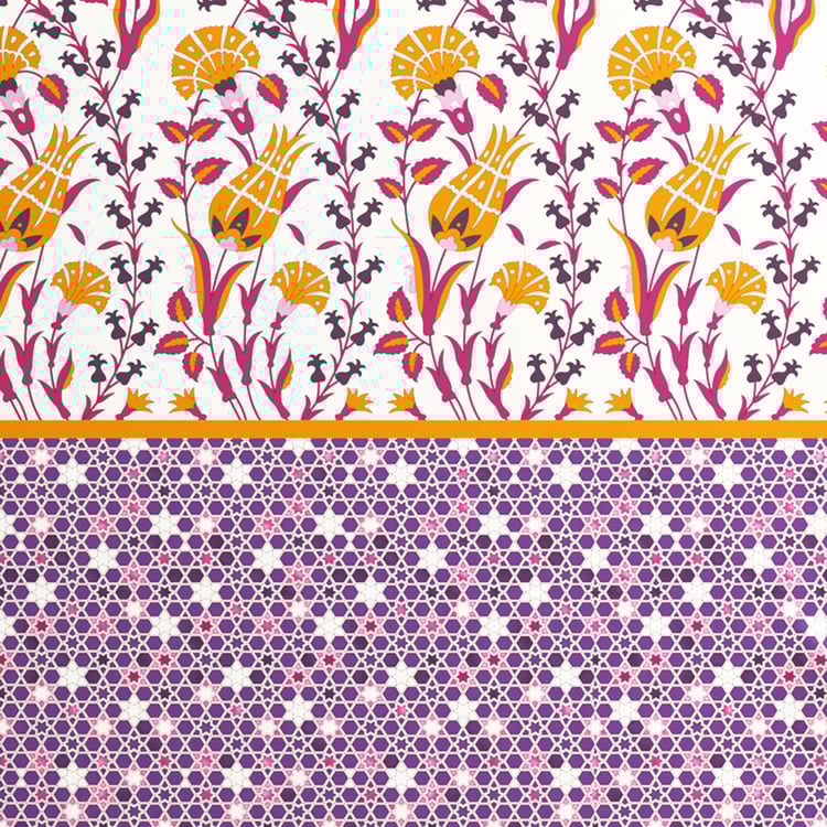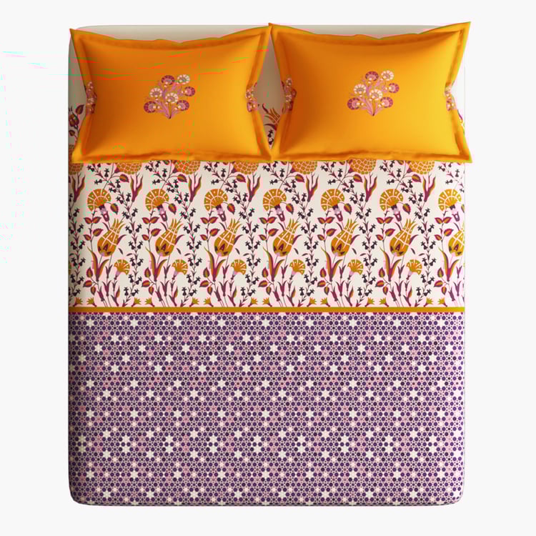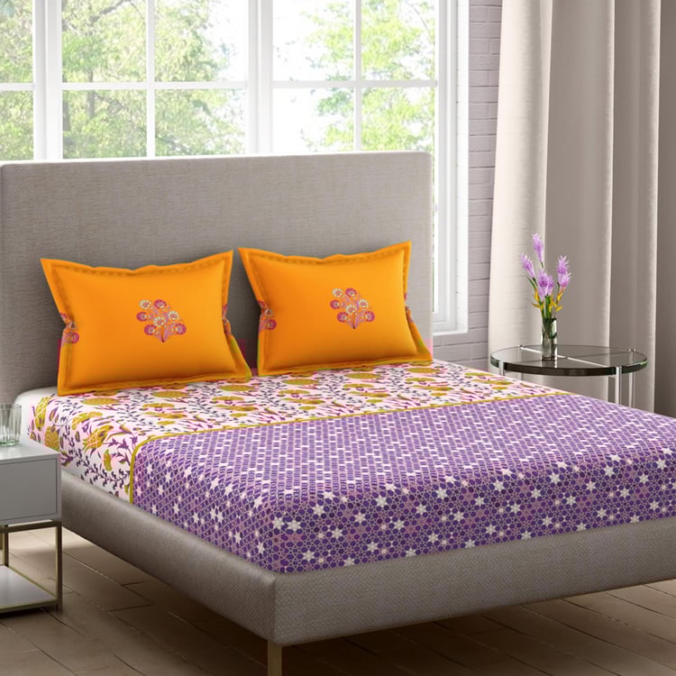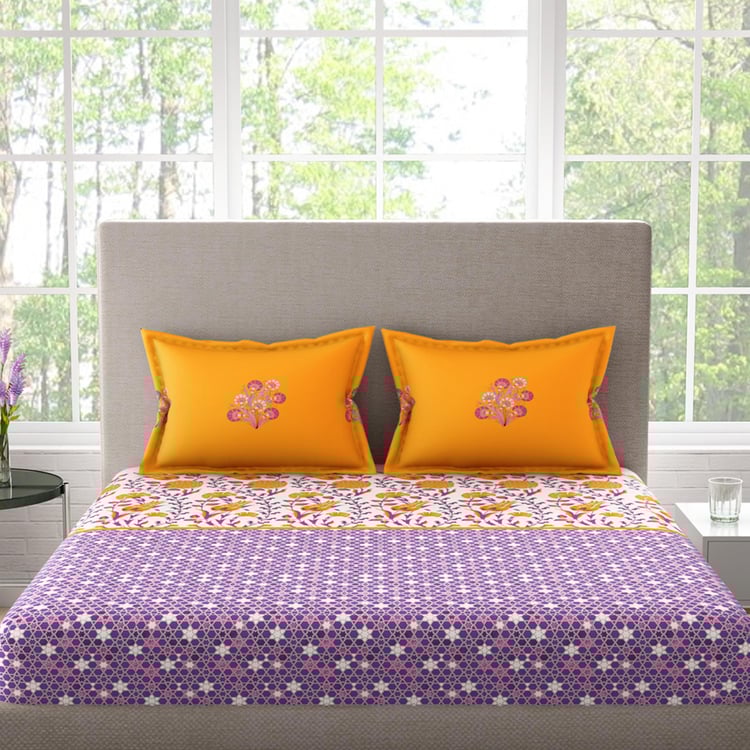 STELLAR HOME Tulip Purple Printed Cotton Queen Bedsheet Set - 224x240cm - 3Pcs