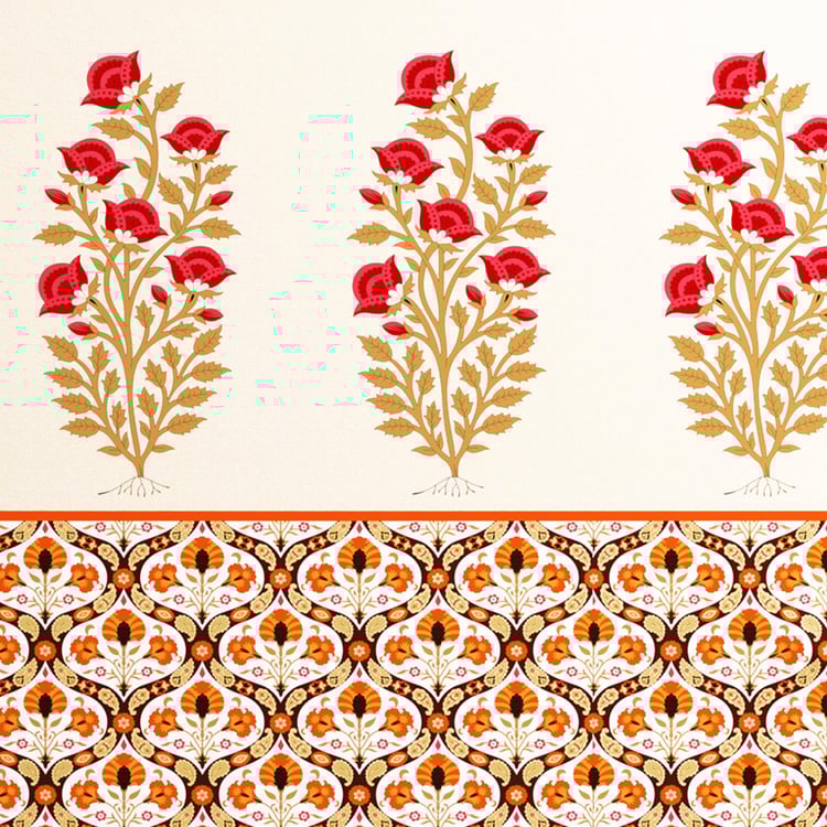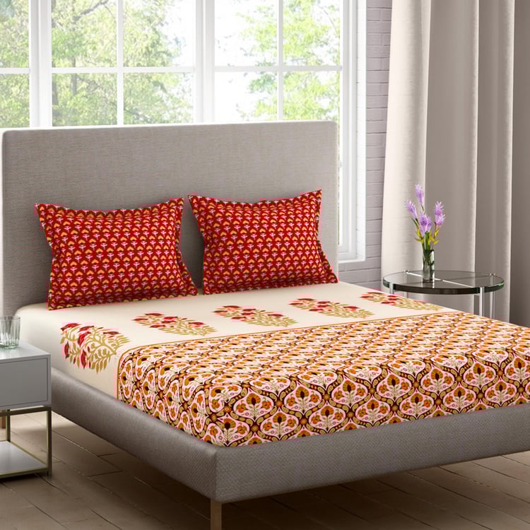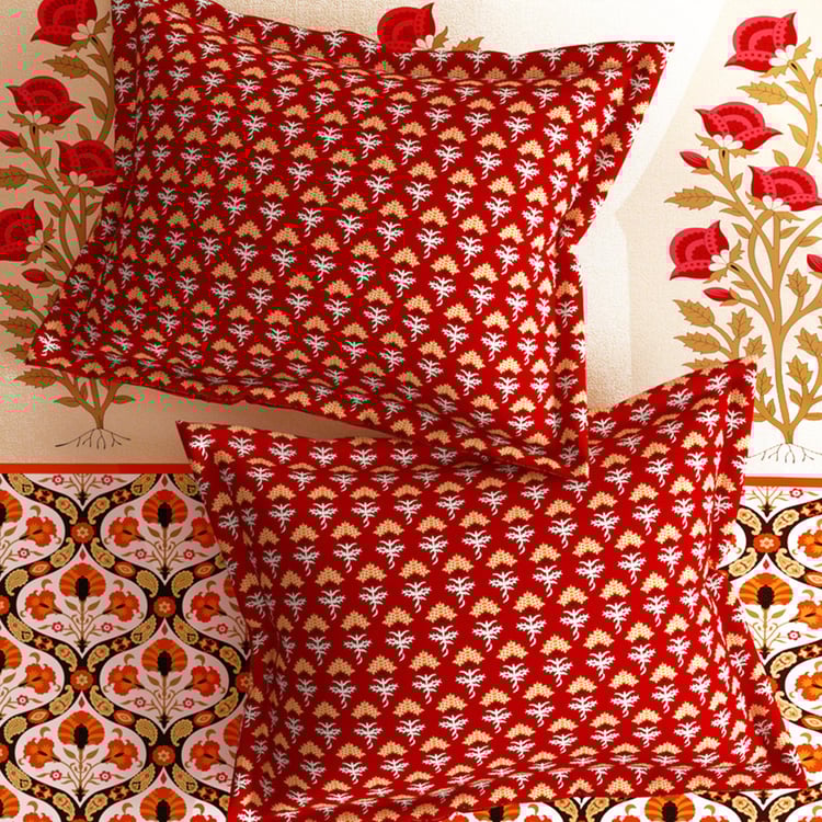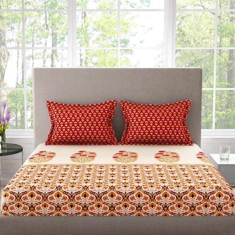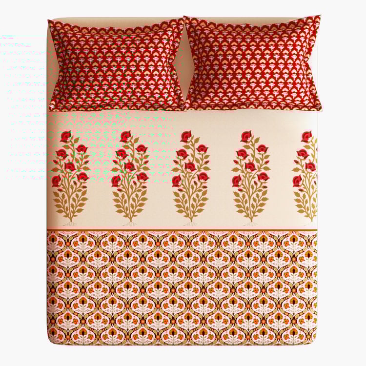 STELLAR HOME Tulip Red Printed Cotton Queen Bedsheet Set - 224x240cm - 3Pcs