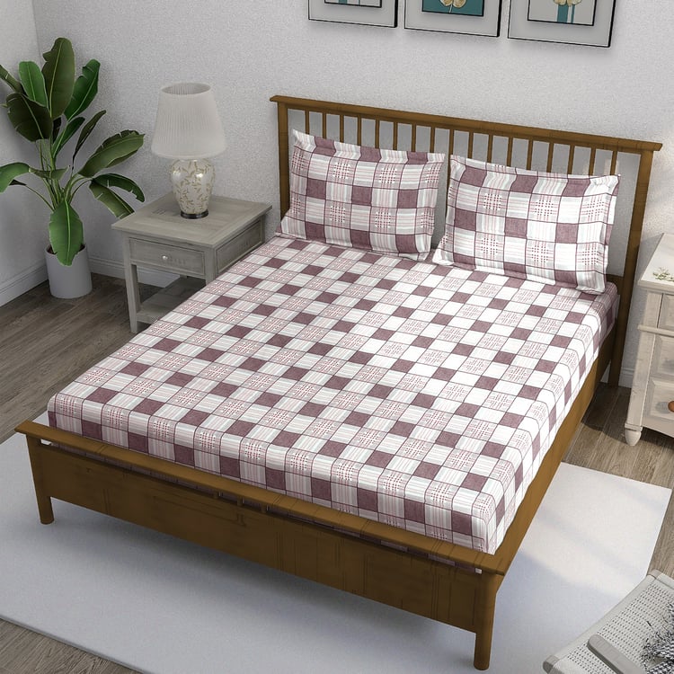 SWAYAM Ananda Cotton 210TC Checked 3Pcs Queen Bedsheet Set