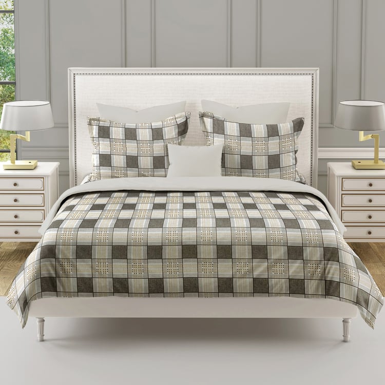 SWAYAM Ananda Cotton 210TC Checked 3Pcs Queen Bedsheet Set