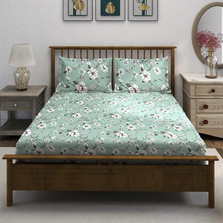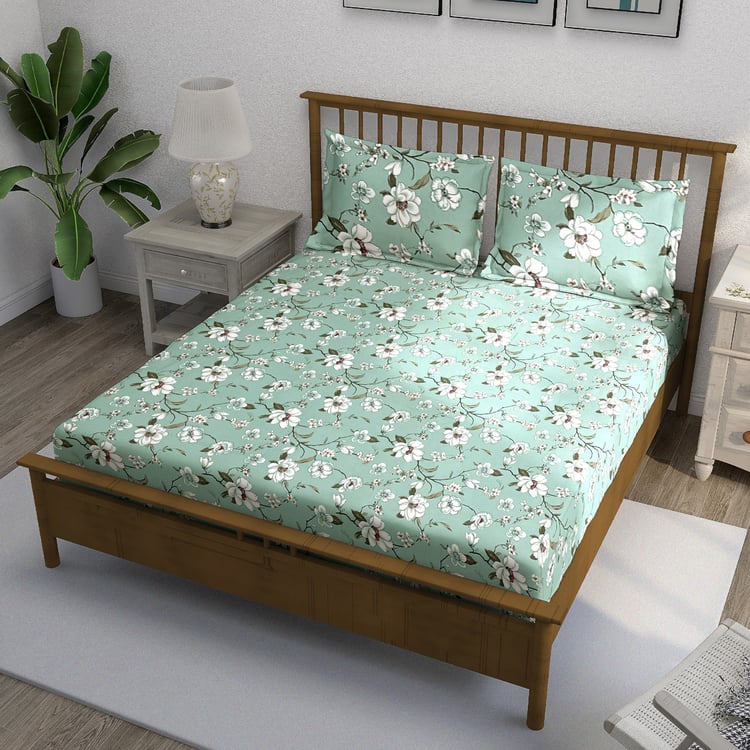 SWAYAM Ananda Cotton 210TC Floral Print 3Pcs Queen Bedsheet Set