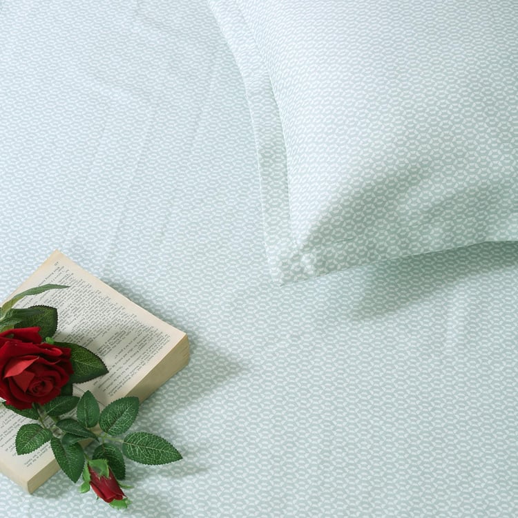 SWAYAM Coral Geometry 250TC Cotton Satin Queen Bedsheet Set