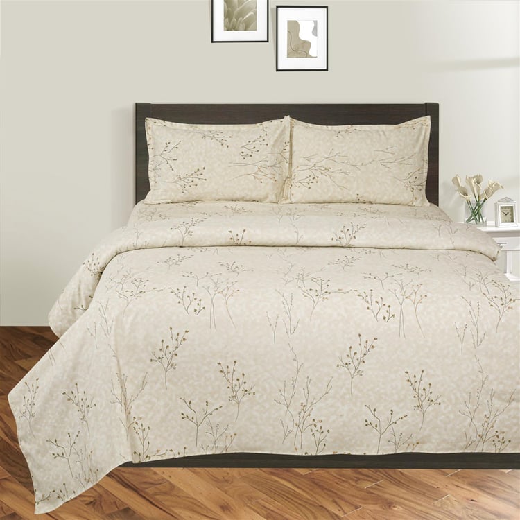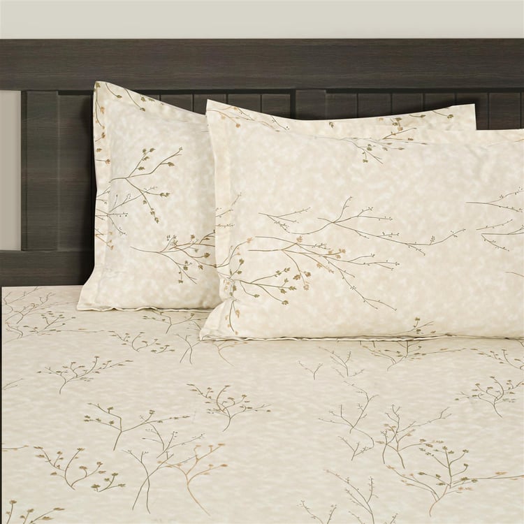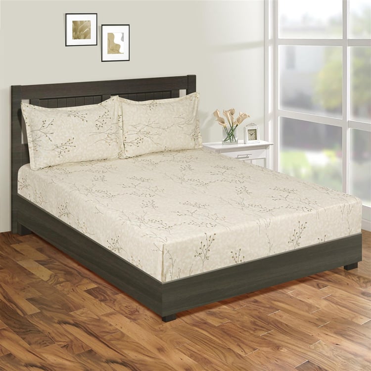 SWAYAM Pastel Vogue - Beige Floral Design Double Bedsheet Set-3Pcs