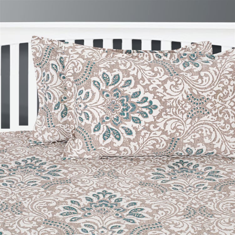 SWAYAM Pastel Vogue - Grey Ethnic Printed Double Bedsheet Set - 3Pcs