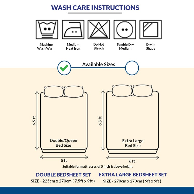 Flat Sheet : 2. 74 m x 2.28 m , Pillow Cover : 46 cm x 71 cm