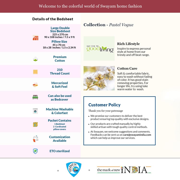 SWAYAM Pastel Vogue 3-Pc. Double Bedsheet Set - 228 x 274 cm