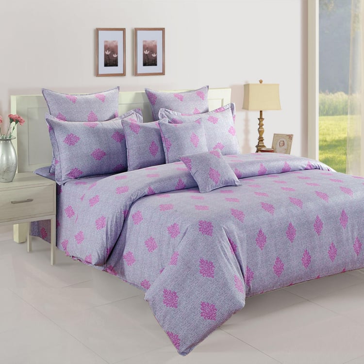 A vibrant double bed sheet set of three pieces, defined by a modish print on the surface to impart a fresh appeal to your bedroom decor. Crafted from premium quality cotton, it ensures that you have breathability and softness, creating an eclectic mix of unsurpassed comfort and elegance.