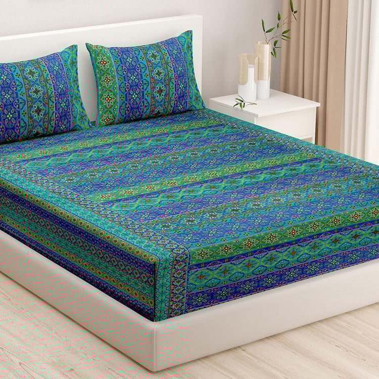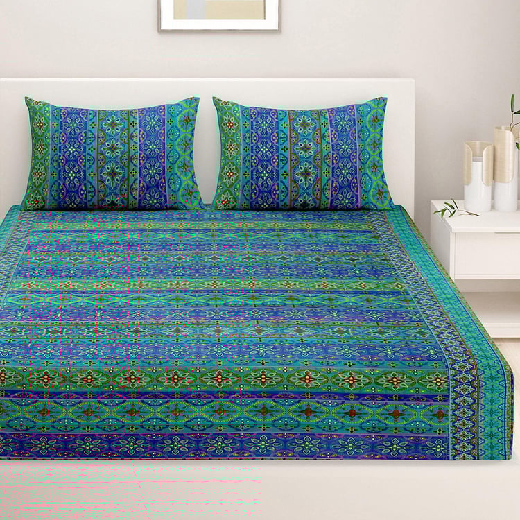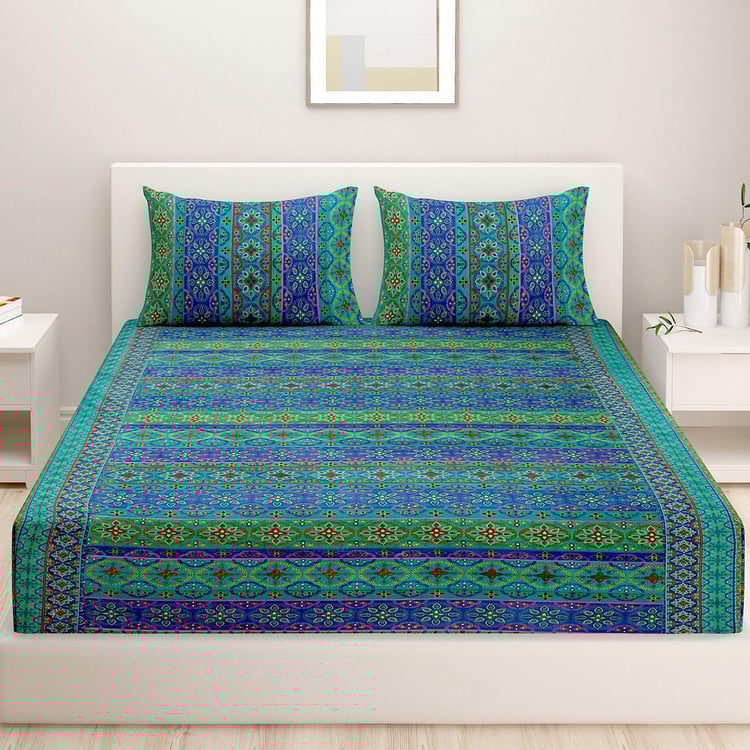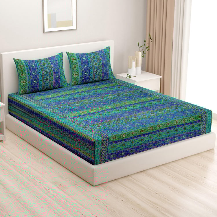 SWAYAM Shades Of Paradise Printed Cotton 240TC 3 Pcs Double Bedsheet Set
