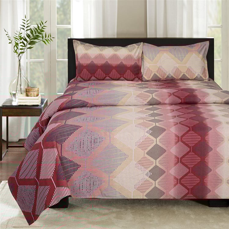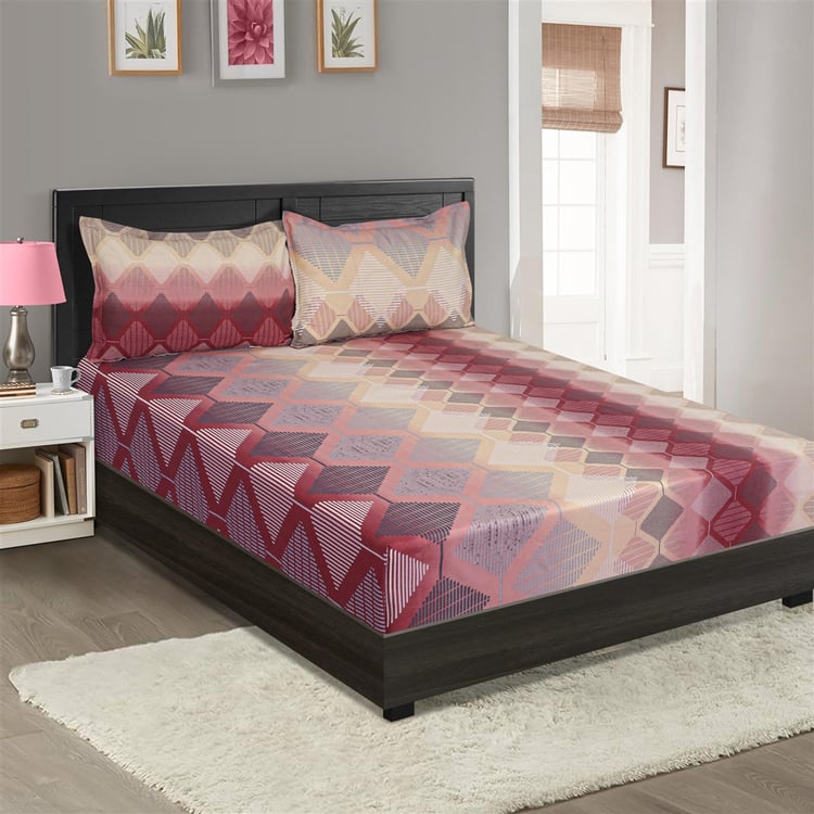 SWAYAM Sparkle-Multicolour Printed Double XL Bedsheet Set-3Pcs
