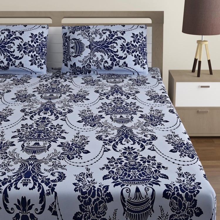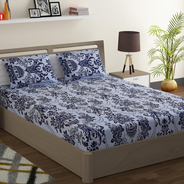 SWAYAM Sparkle Printed 3 - Piece Fitted Double Bedsheet Set -180 x 190 cm