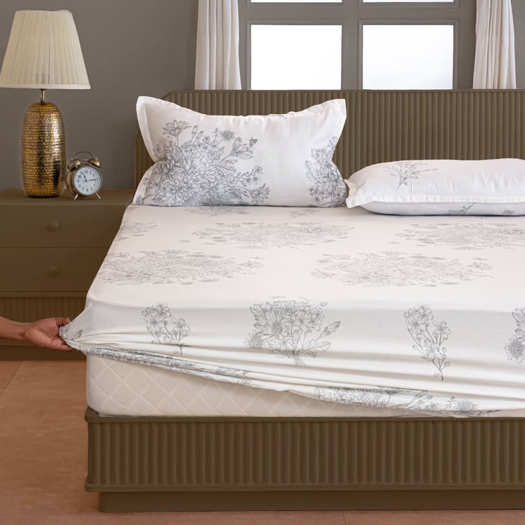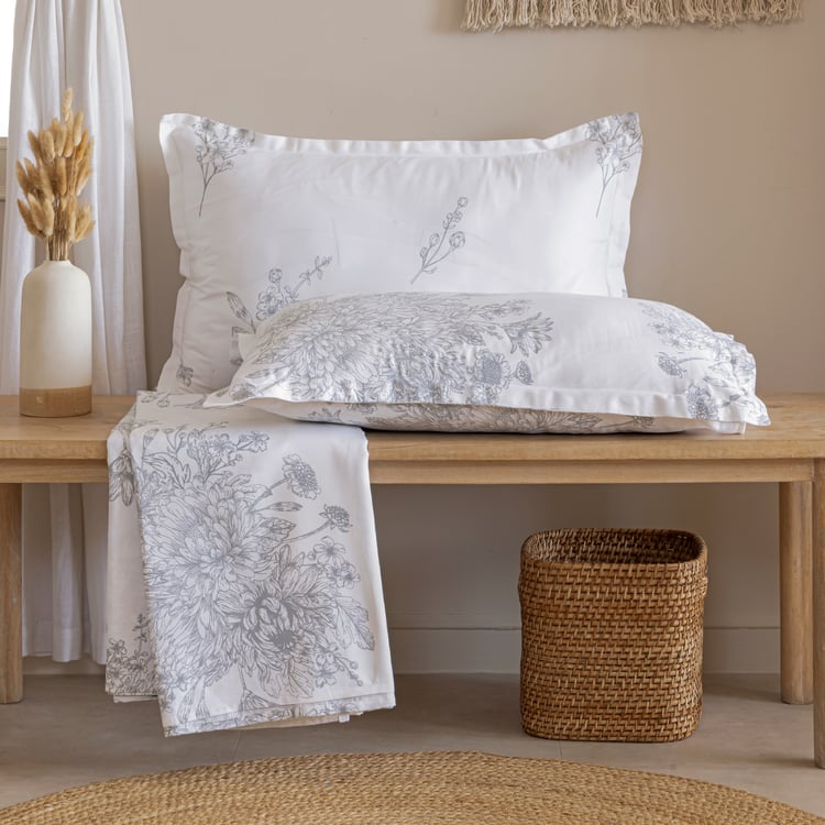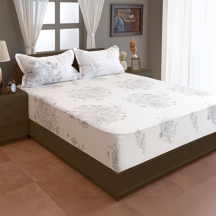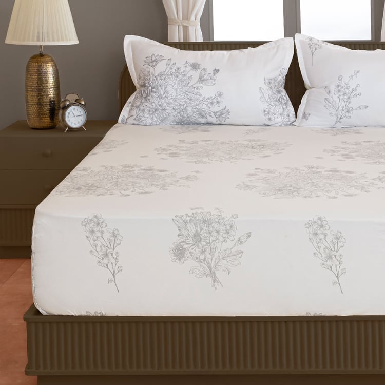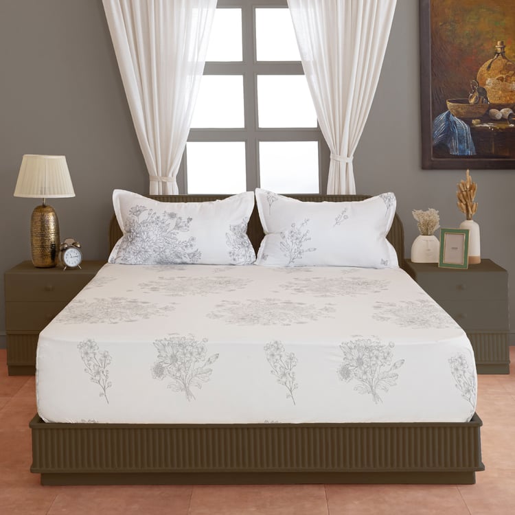 SWAYAM Zinnia Cotton 250TC Floral Print 3Pcs Super King Bedsheet Set