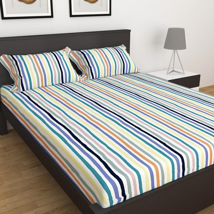 Designed with bold prints, this bedsheet set includes a double-size bedsheet and 2 pillow covers. Made from a soft fabric, this set not only ensures superior comfort and high softness but also makes your living space a favorite.