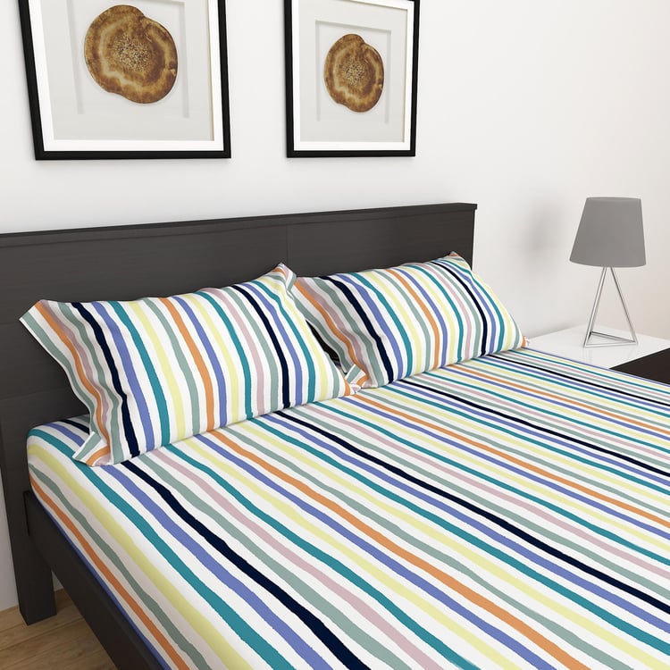 Slate Blue Striped 3-Piece Flat Sheet Double Bedsheet Set- 228x254cm- Cotton- 150TC