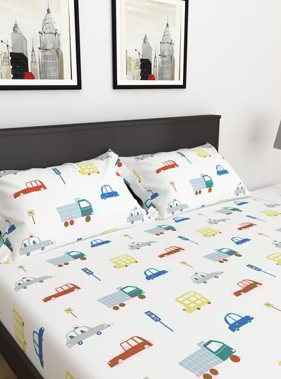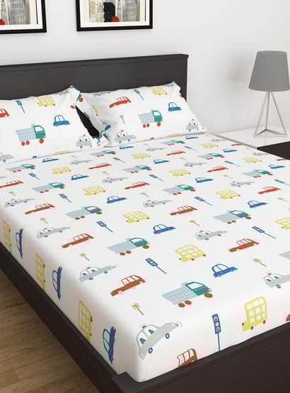 Slate White Printed 3-Piece Flat Sheet Double Bedsheet Set- 228x254 cm- Cotton- 150TC