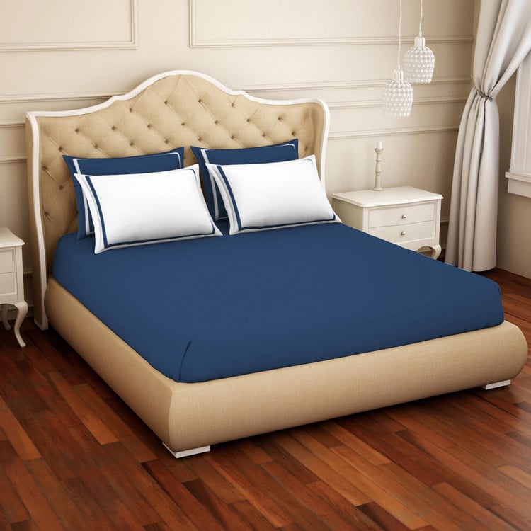 Spaces Hygro Navy Blue 300 Tc Cotton Large Bed Sheet With 4 Pillow Covers