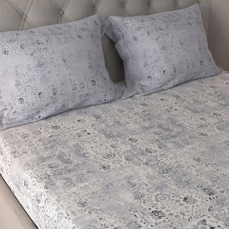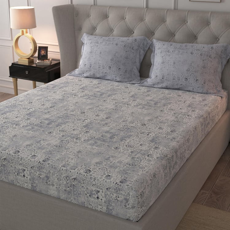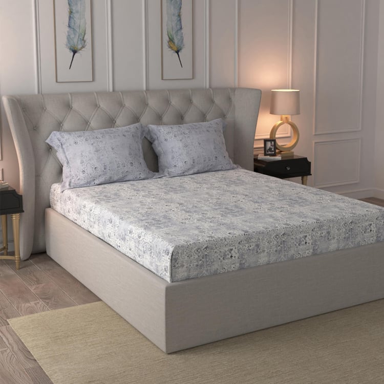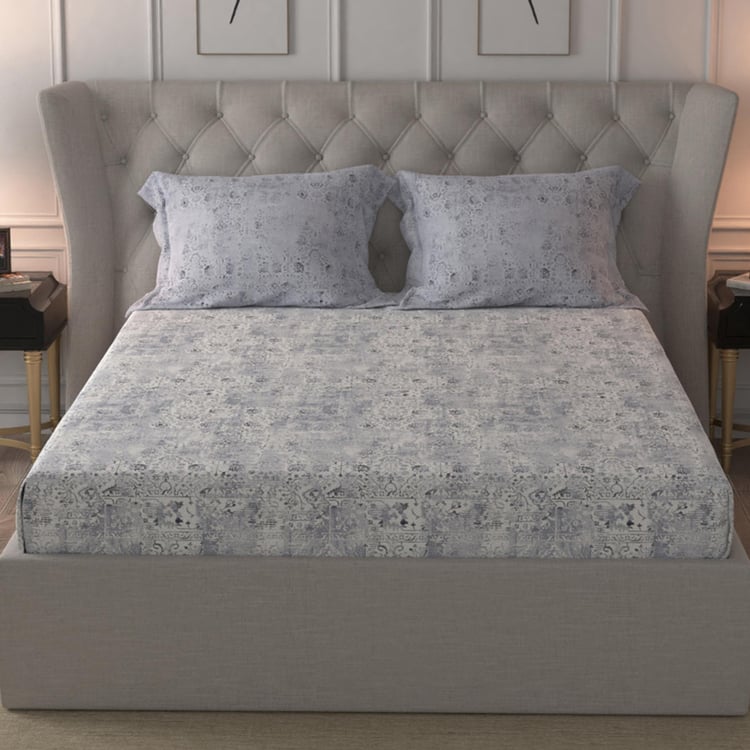TRIDENT Home Essential Blue Printed Cotton Super King Bedsheet Set - 274x274cm - 3Pcs