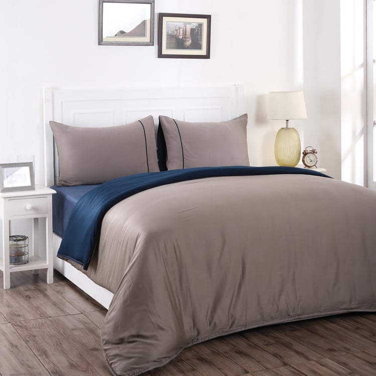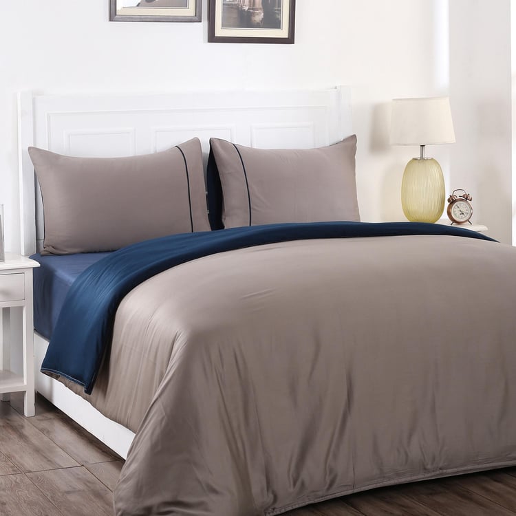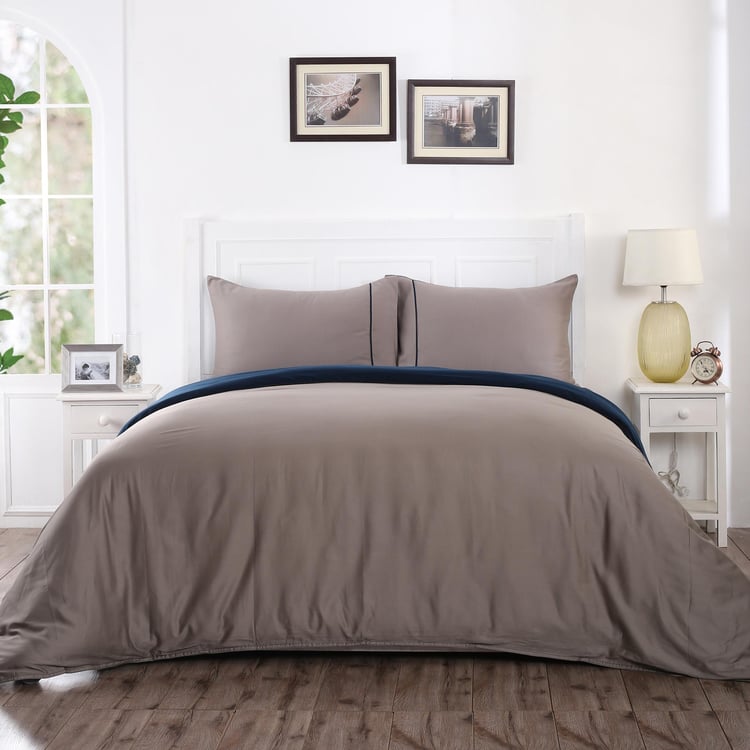 MASPAR Viola Dual-Colour Solid Cotton Queen Duvet Cover Set - 220x240cm - 3Pcs