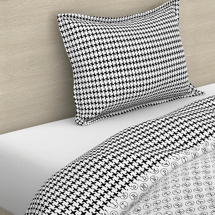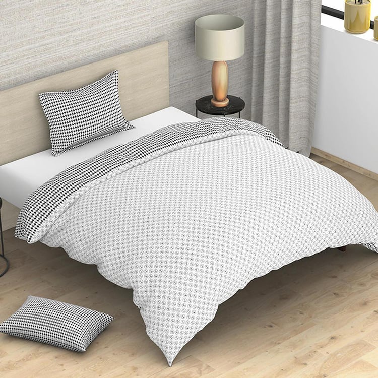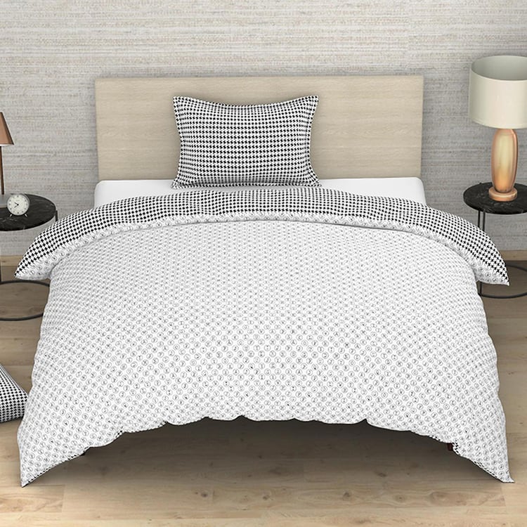 Bring in a corporate twist to your bedroom with the formal single-sized duvet covers from C.O.D.E.S. that lends a sophisticated aura to your personal space! Exclusively stylish and functional in stark black and white, where minimalism is the key, it caters to the go-getters who give their best in all they do and never give up! The reverse reveals a bold and busy pattern.