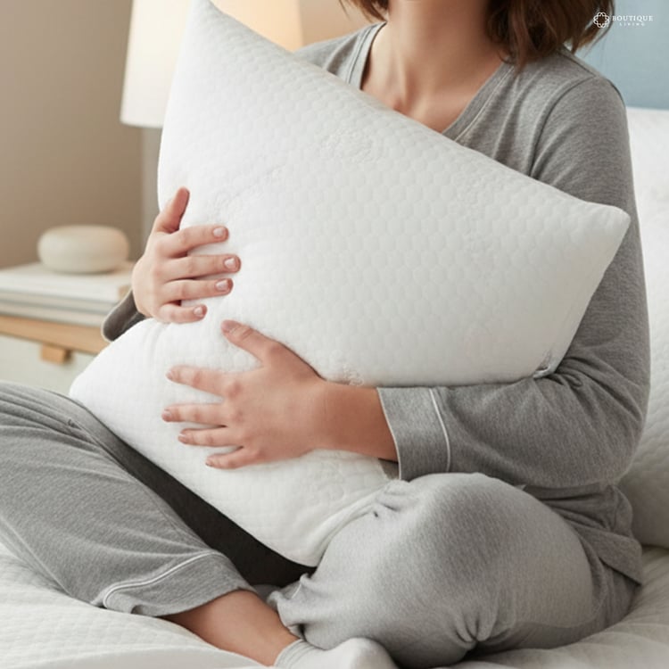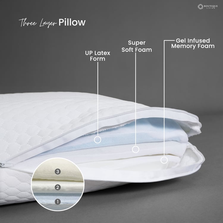 Boutique living’s adjustable memory foam pillow combines three removable layers: UP latex form, super soft foam, and gel-infused memory foam with a breathable, moisture-managing quilted cover to deliver customizable height, cooling comfort, and proper alignment for all sleep positions.