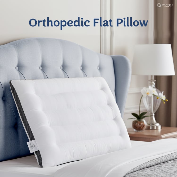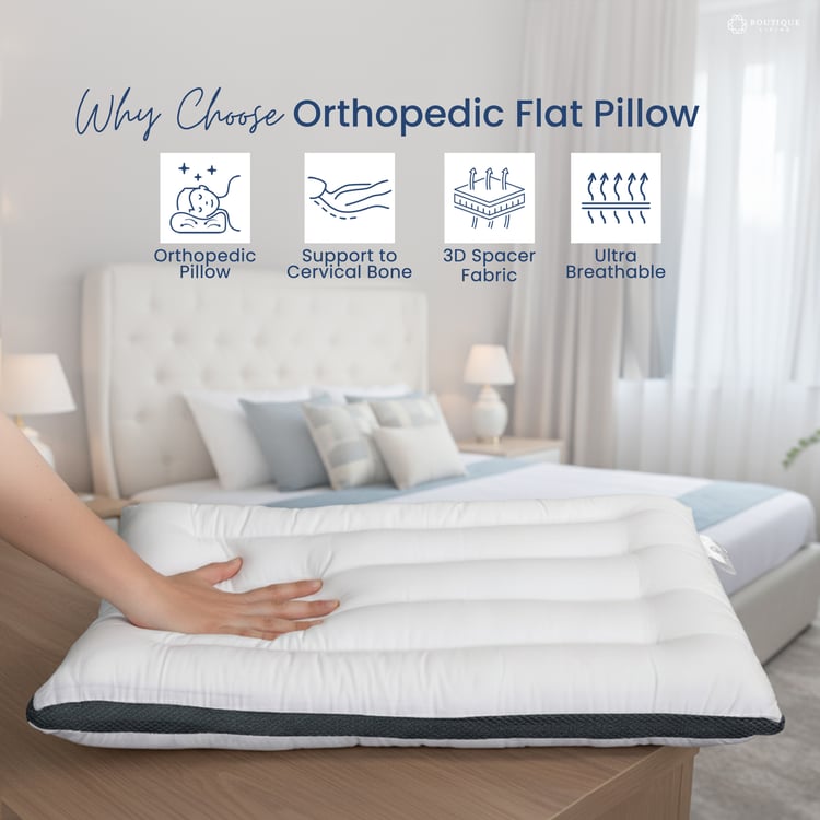 The Boutique Living Orthopaedic Pillow offers firm, pressure-relieving cervical support with its 190 TC breathable outer fabric and thermal-bonded inner sheet, ensuring proper spinal alignment, durability, and restorative comfort for back and side sleepers.