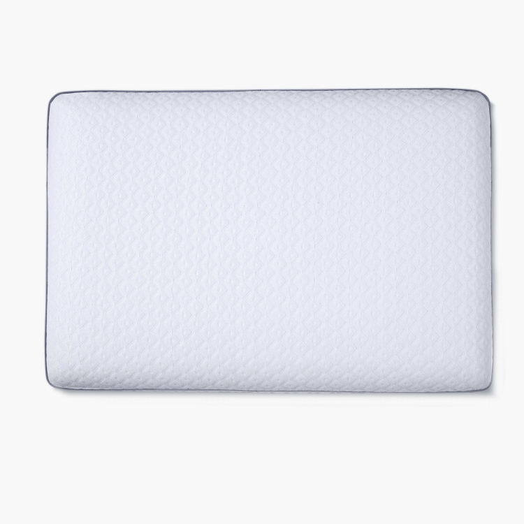 This solid pillow is constructed from soft fabric with memory foam, temperature control, and moisture absorption features to keep you comfortable and cozy, while embracing an elegant look.
