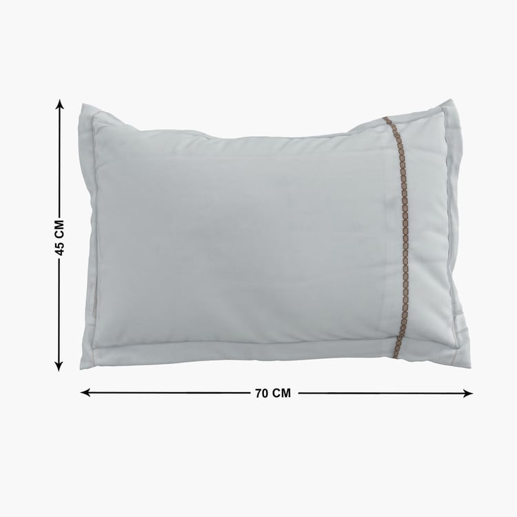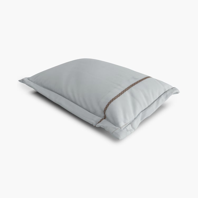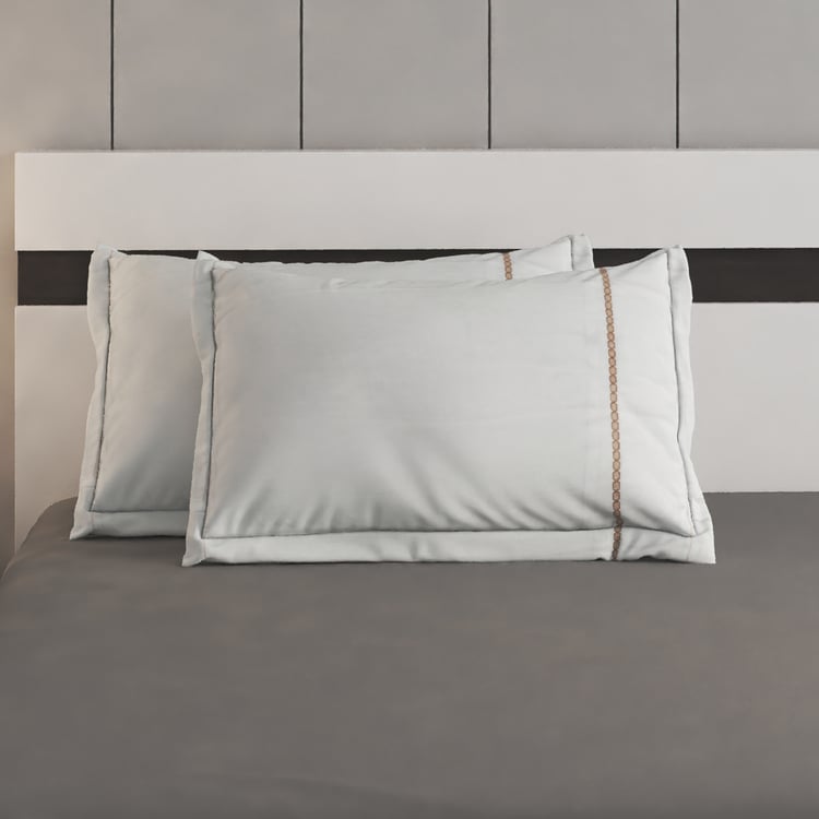 Refresh your bedding with this set of two embroidered pillow covers, detailed with fine edge stitching for added strength and durability. Crafted from premium 300 TC cotton fabric, they offer a soft, breathable feel and are easy to maintain. Blending everyday practicality with timeless style, these covers make a perfect addition to your home.