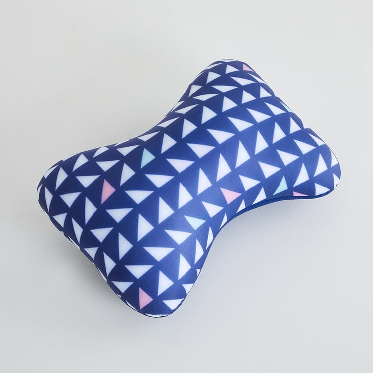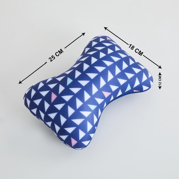 Travel Blue Printed Nylon Bone Neck Pillow - 25x18cm