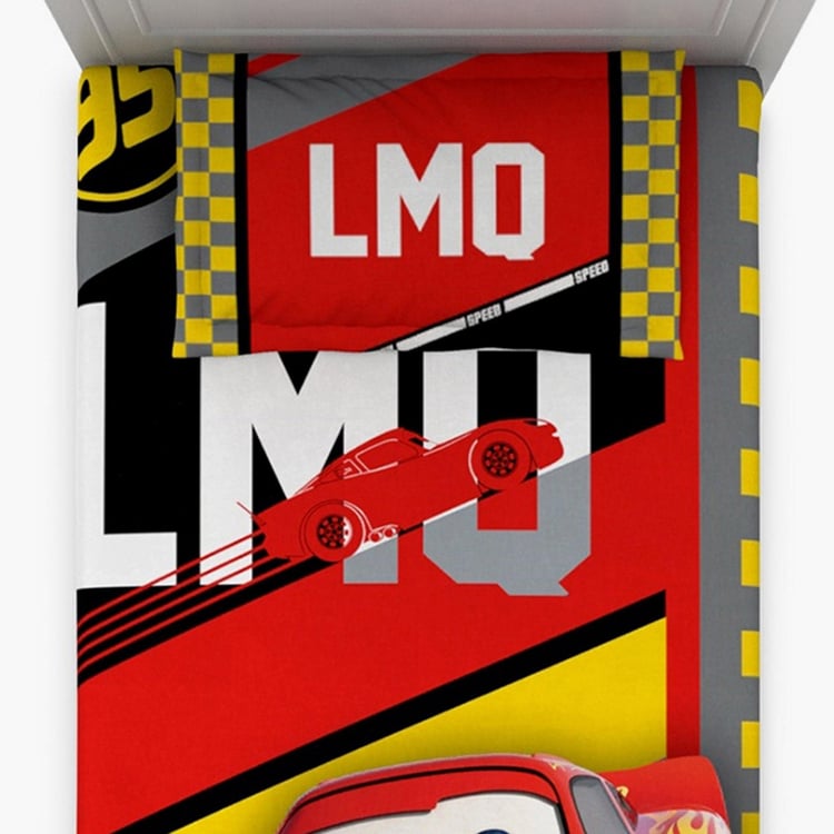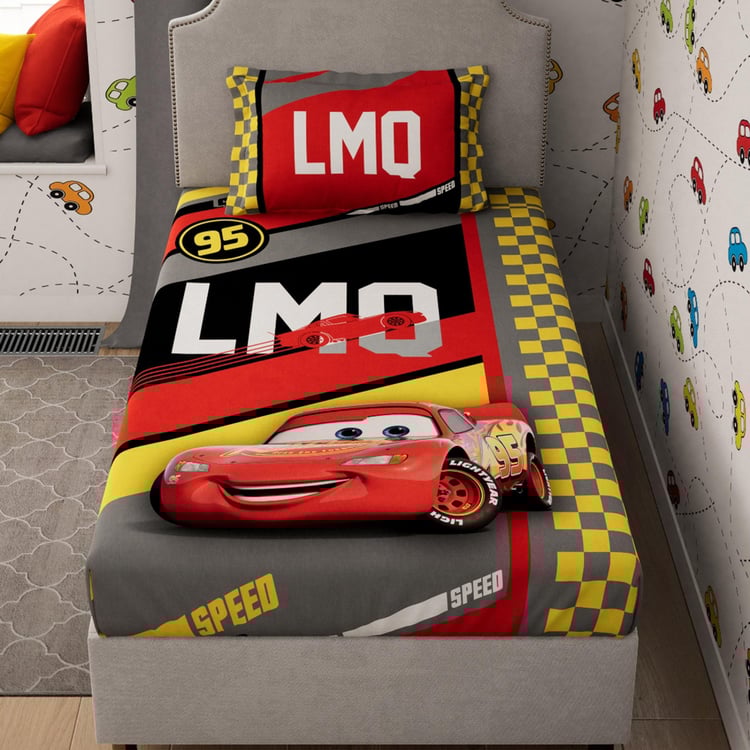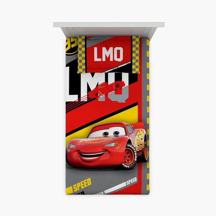 D'DECOR Kids Economy Red Cars Printed Cotton Single Bedsheet Set - 152x224cm - 2Pcs