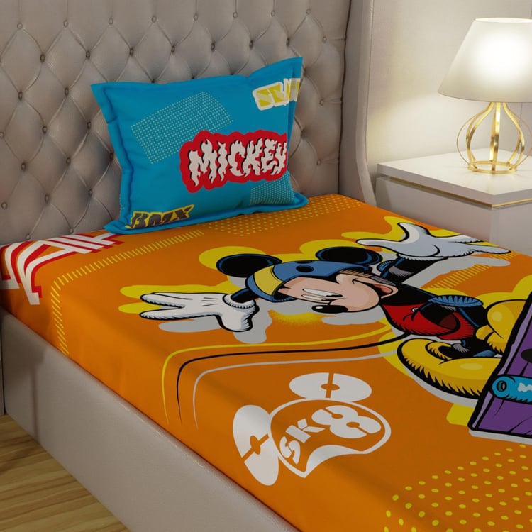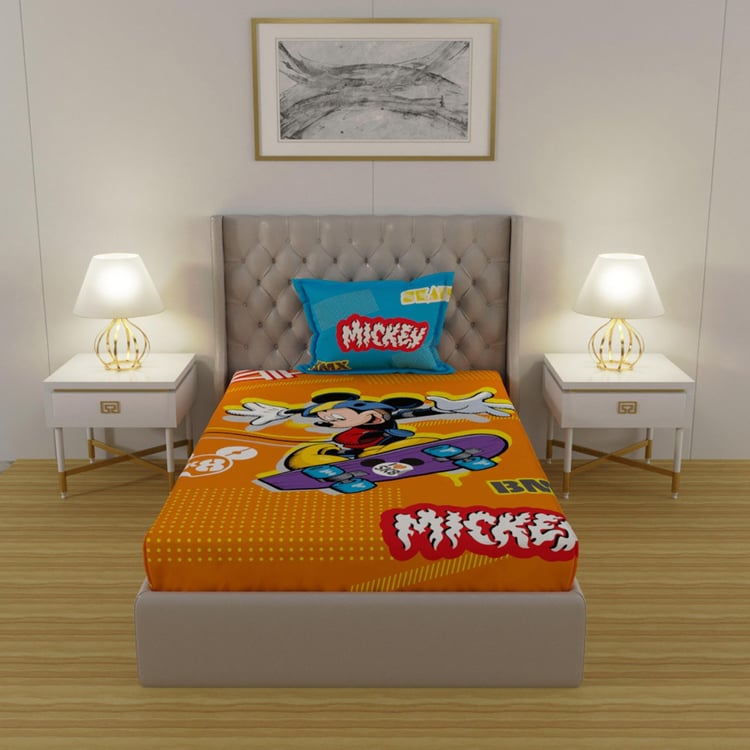 DISNEY Minnie Mouse Yellow Printed Cotton Single Bedsheet - 150x220cm - 2Pcs