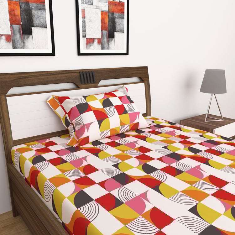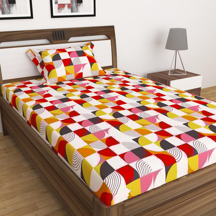 Juniper Castro Red Printed Cotton Single Bedsheet Set- 2 Pieces