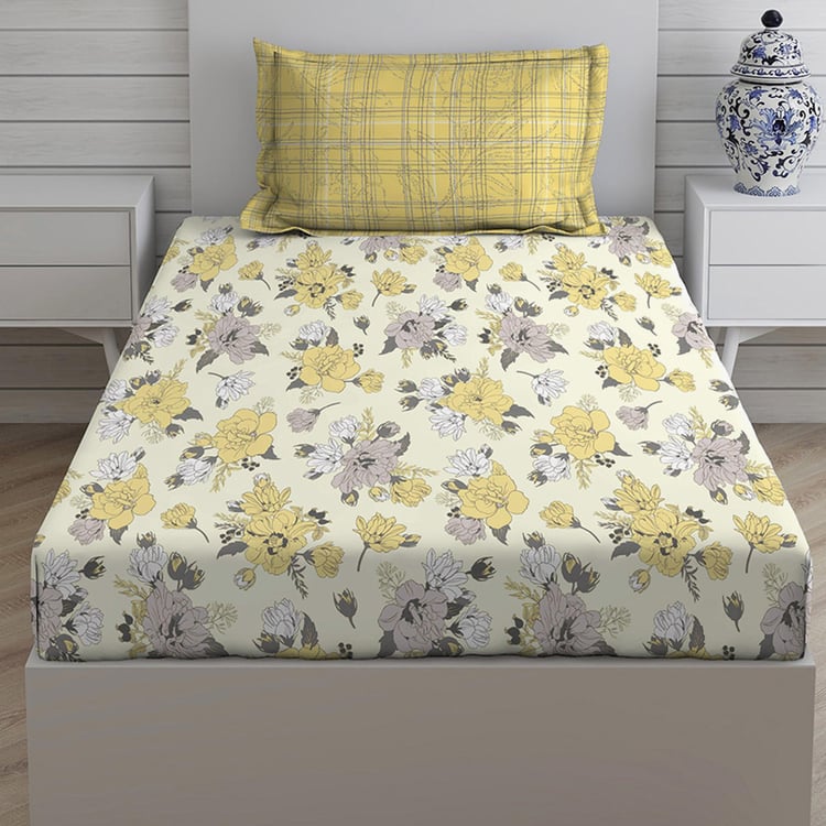 LAYERS Roma Yellow Floral Printed Cotton Single Bedsheet Set - 152x224cm - 2Pcs
