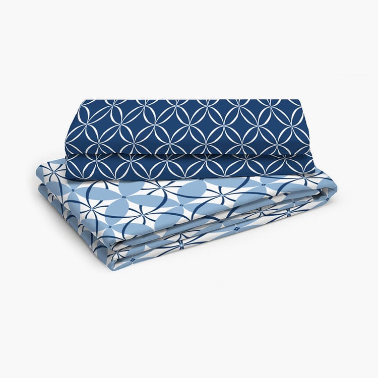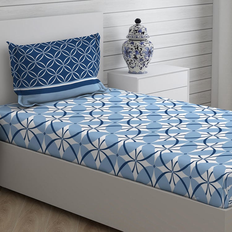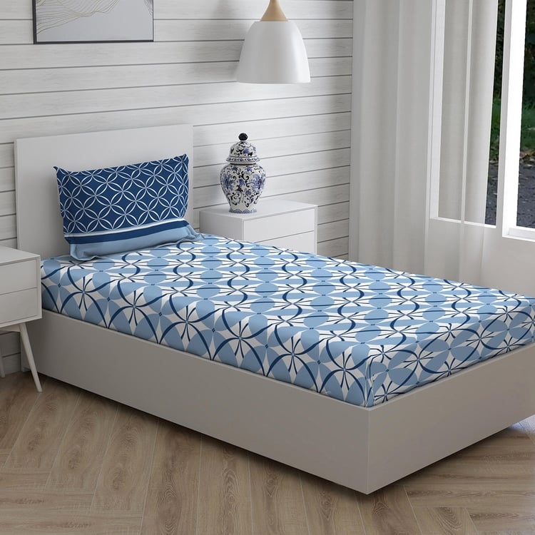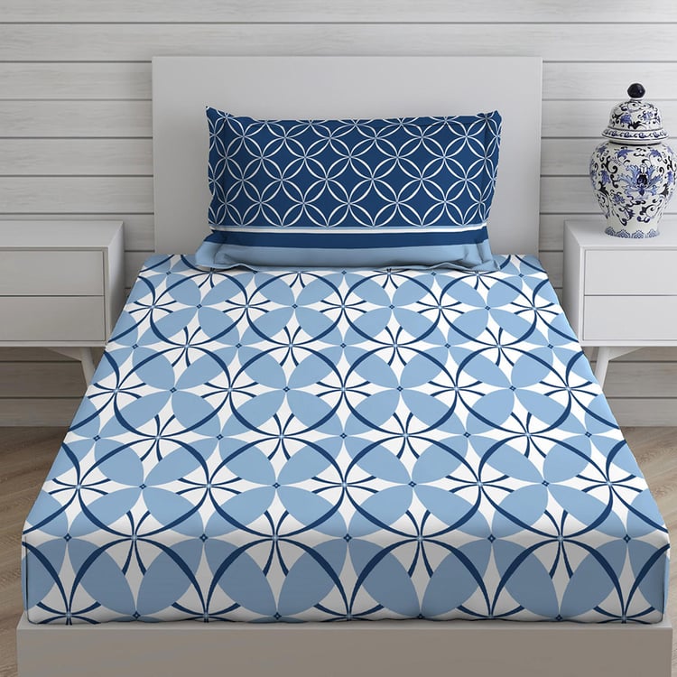 LAYERS Siena Blue Printed Cotton Single Bedsheet Set - 152x228cm - 2Pcs