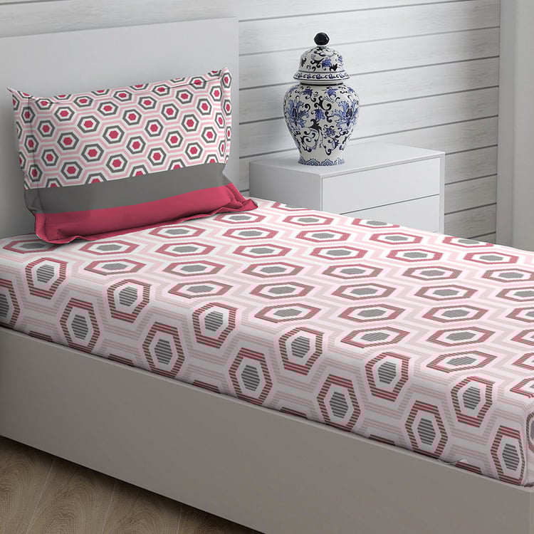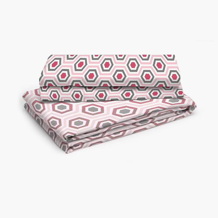LAYERS Siena Pink Printed Cotton Single Bedsheet Set - 152x228cm - 2Pcs