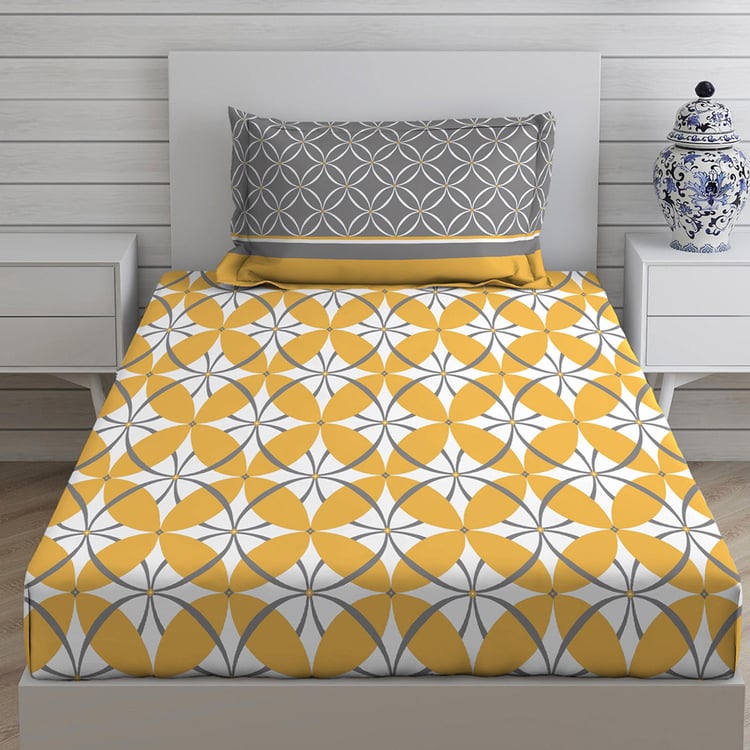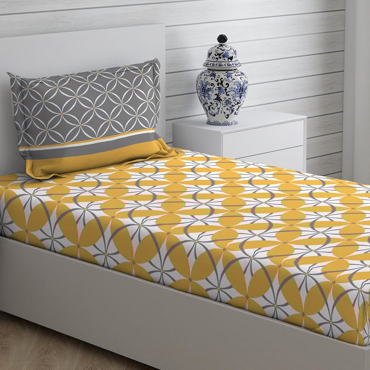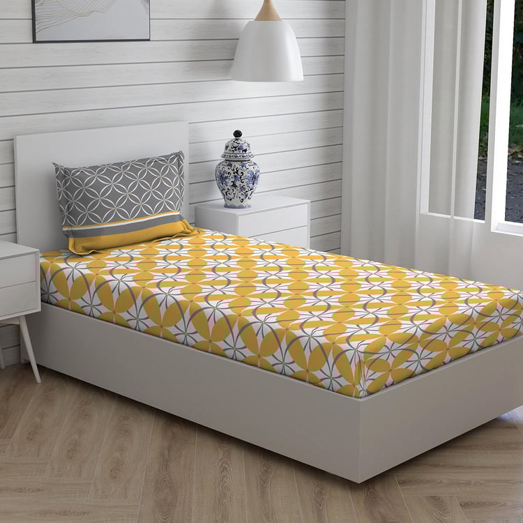 LAYERS Siena Yellow Printed Cotton Single Bedsheet Set - 152x228cm - 2Pcs