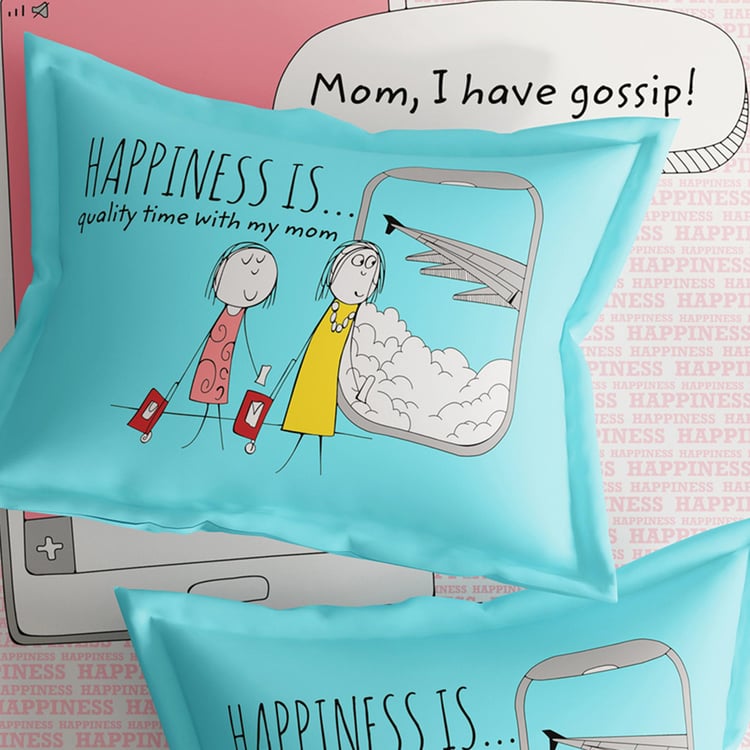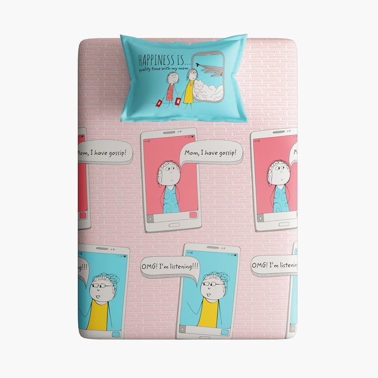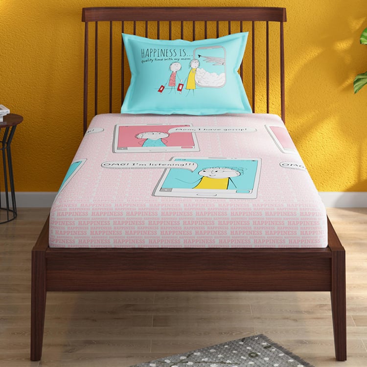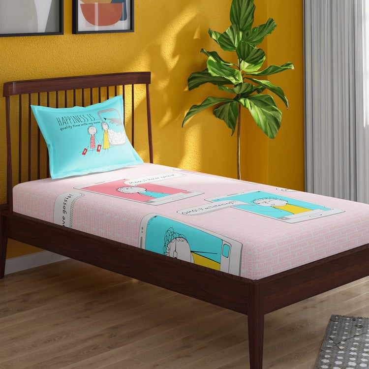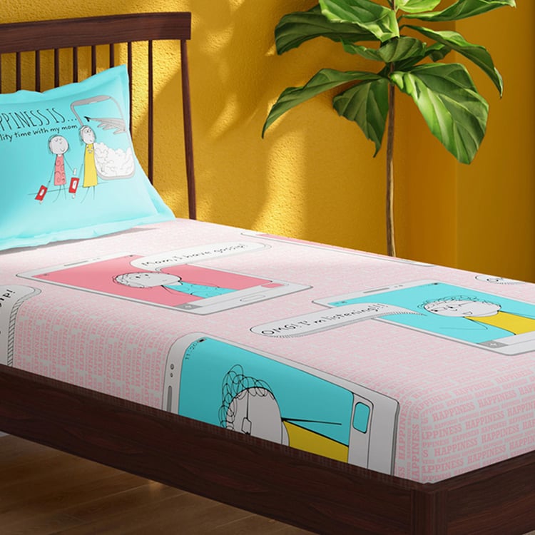 PORTICO Happiness Is Pink Printed Cotton Single Bedsheet - 154x224cm - 2Pcs