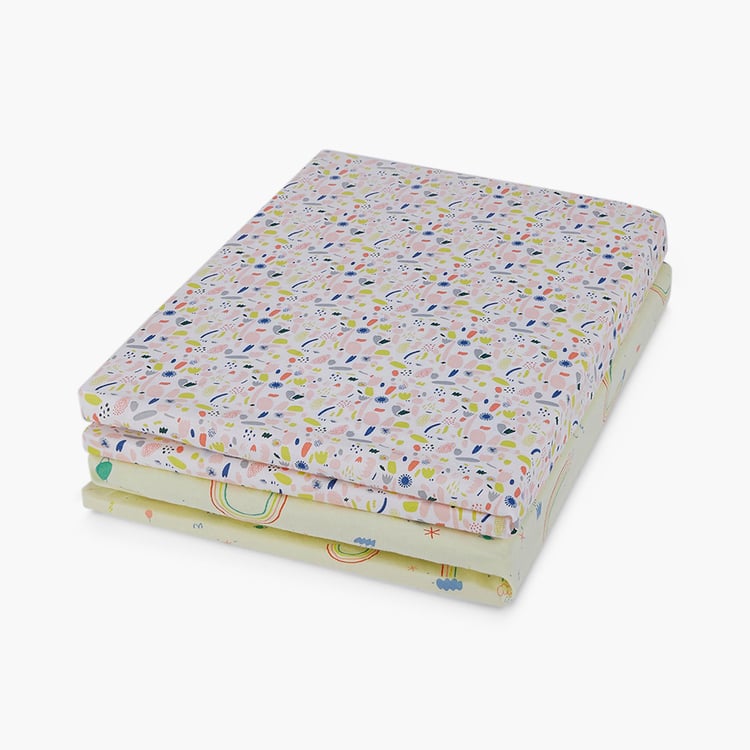 Ensure sound sleep for your little one in this soft, plush, comfy fitted infant bedsheet set that is made of premium cotton in a printed colorway with effective odour control, anti-microbial protection, and enhanced freshness.