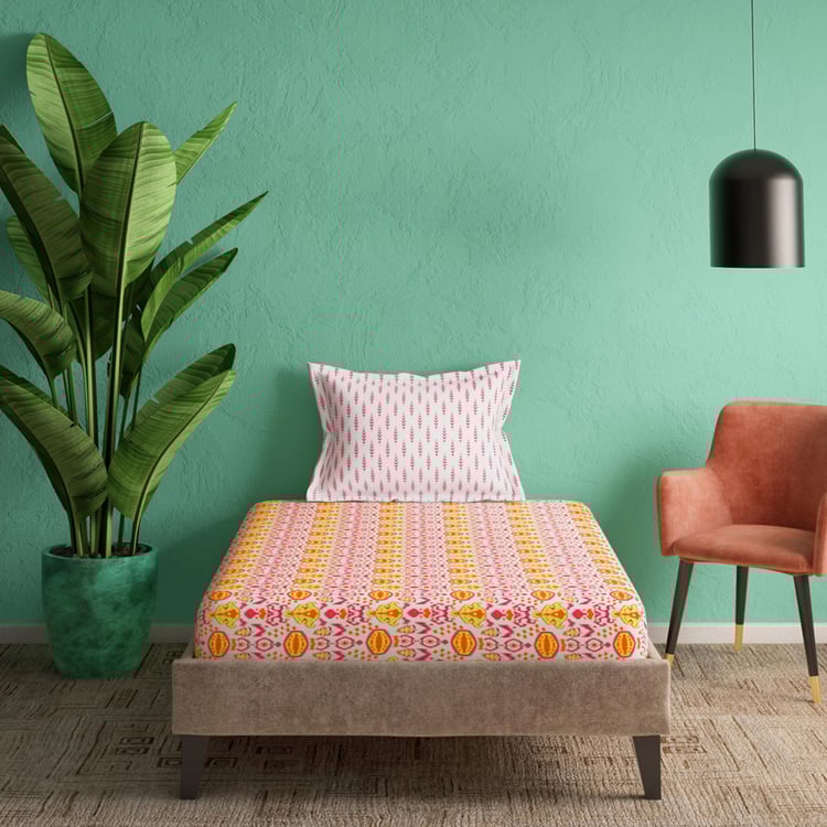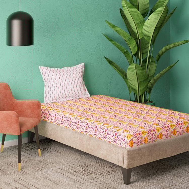 Tailored in a printed design, this bedding set includes a single bed sheet and a pillow cover. Tailored from a soft fabric, this set ensures superior comfort and high softness and makes your living space a favorite.
