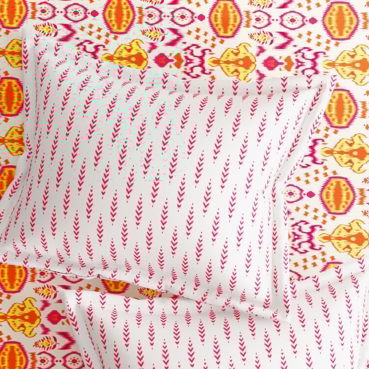 PORTICO Marvella Orange Printed Cotton Single Bedsheet Set - 150x224cm - 2Pcs