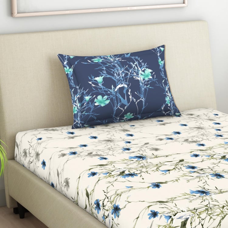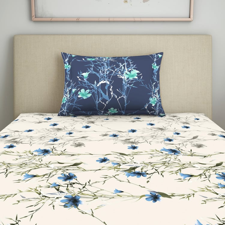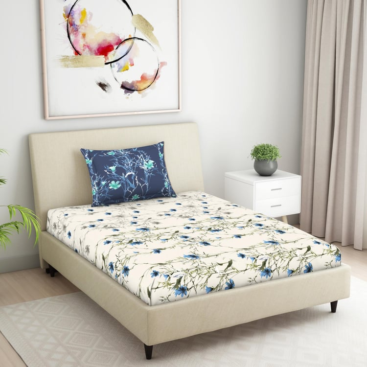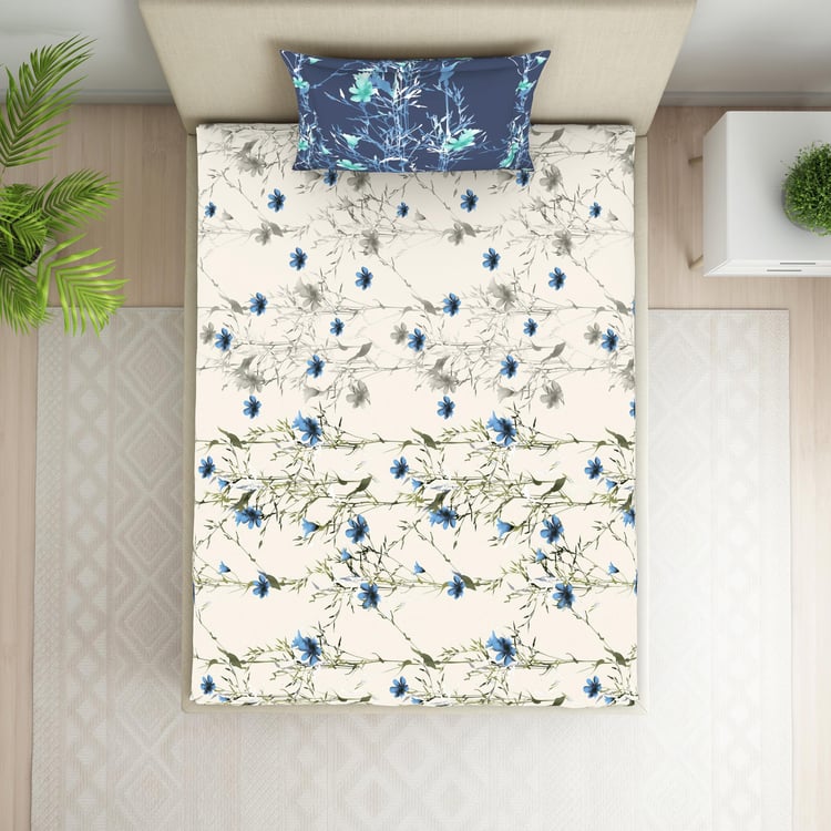 SPACES Seasons Best Premium White Floral Printed Cotton Single Bedsheet Set - 224x152cm - 2Pcs