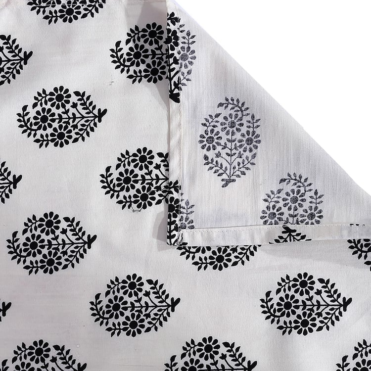 Presenting the "Ebony Harmony: Classic Buti 200TC Cotton Bedsheet Set," where traditional design meets modern simplicity. This elegant bedsheet set weaves together the timeless beauty of ethnic buti motifs with the stark, chic contrast of black and off-white. The small, detailed patterns offer a sense of heritage, artfully paired with the sleek sophistication of contemporary design. Crafted with sumptuous 200 thread count cotton, it provides not just visual appeal but a promise of comfort and serenity in every thread. Sophisticated Contrast: The classic duo of black and off-white casts a bold silhouette, bringing a modern edge to traditional patterns. Crisp Ethnic Motifs: Immerse yourself in the crisp lines of buti prints, symbolizing heritage and the enduring allure of artisanal craft. Versatile Style: A perfect blend for any decor, this bedsheet set moves seamlessly from minimalist to eclectic spaces. Uncompromised Comfort: Indulge in the soft, breathable luxury of high-quality cotton, ensuring a restful sleep within the embrace of durable fibres.