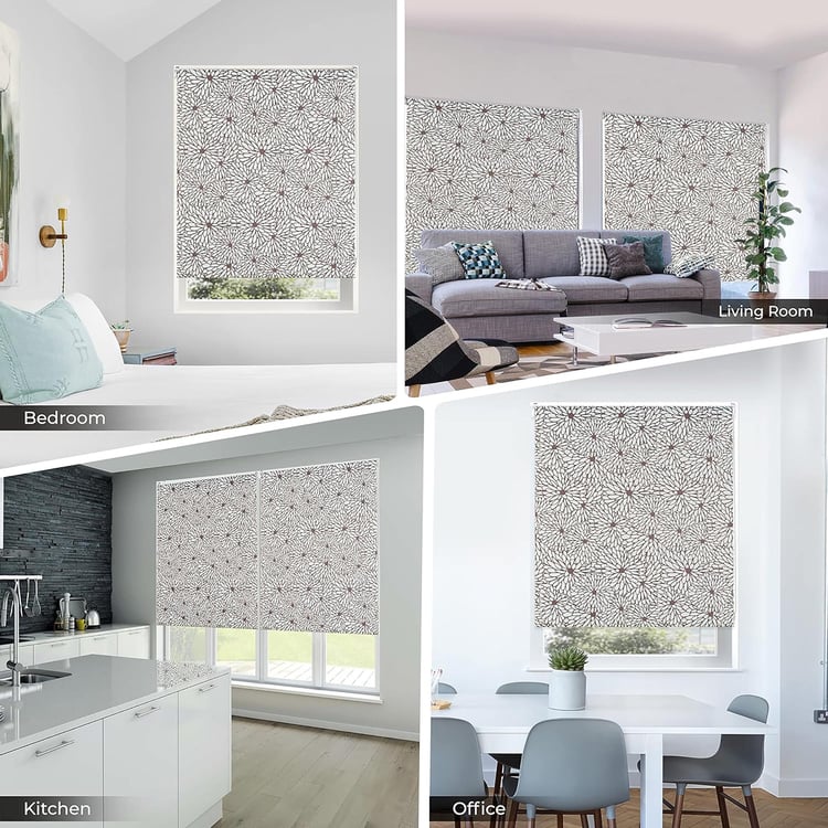 A roller blind offers all the beauty of fabric but with the ease of use of a blind. It is the perfect answer for the discerning home-owner who wants the elegance of a curtain but the convenient operation of blinds. Feature: Auto Locking; Folds up in classic roller style. Thermal Insulation: Our printed roller blinds come with thermal insulation properties, helping to regulate the temperature inside your home. This feature can contribute to energy efficiency by reducing heat loss in winter and heat gain in summer. Transparency : 65% blackout. Child safety lock. Available in 25 standard sizes. This comes with all the hardware required for installation. Sound Absorption: For spaces where noise reduction is a concern, consider printed roller blinds with sound-absorbing properties. These blinds can help create a more acoustically comfortable environment by reducing external noise. Smart Home Integration: Embrace the future with printed roller blinds that can be integrated into smart home ecosystems. This allows you to control and automate your blinds along with other connected devices for a seamless home automation experience.