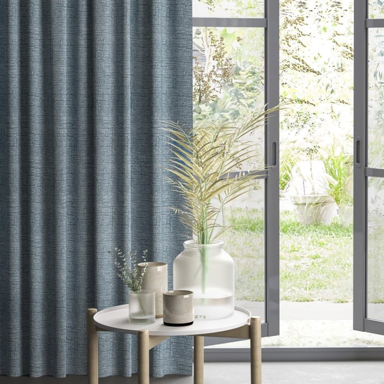 D'DECOR Blue Textured Door Curtain- 135 x 225 cm