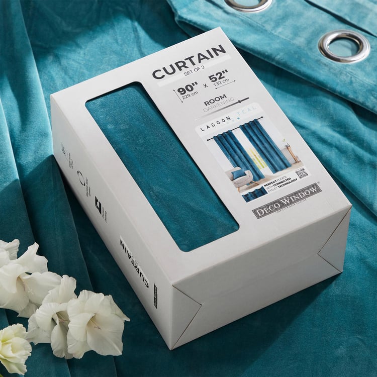 DECO WINDOW Lagoon Teal Set of 2 Room Darkening Window Curtains