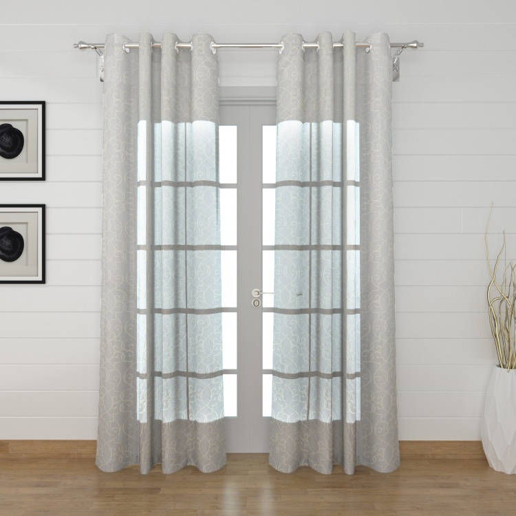 Featuring a chic embroidery this door curtain is designed to protect your house from the troubles of a harsh weather while imparting a stylish feel to your home decor with its semi sheer construction.