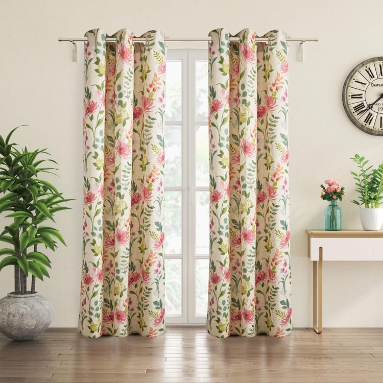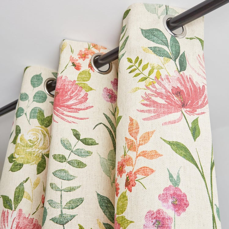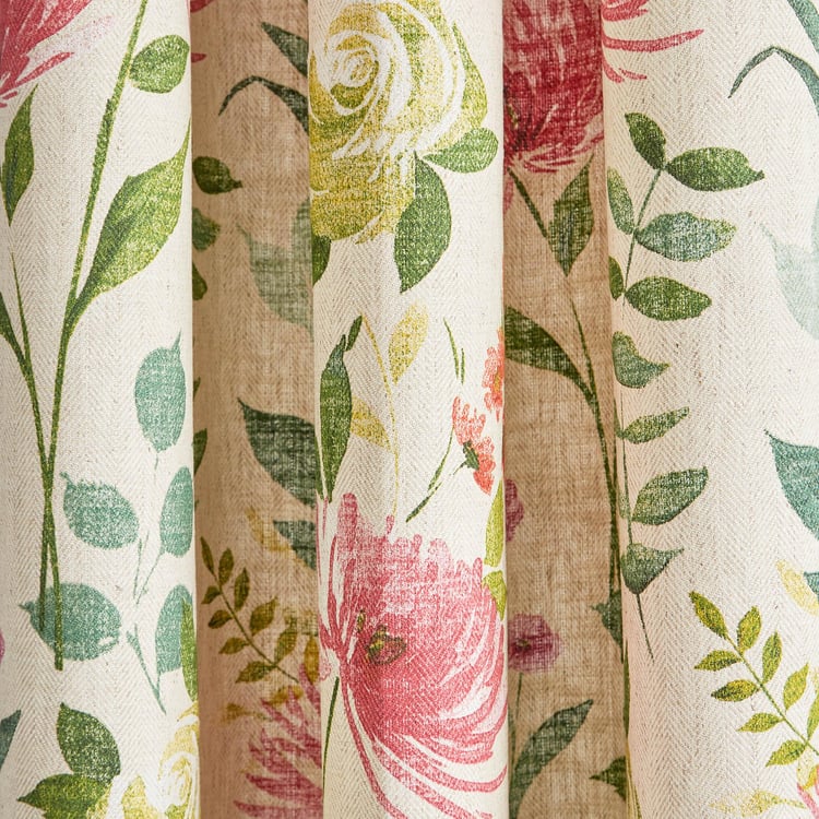Mellow 1Pc Floral Print Light Filtering Door Curtain - 7ft