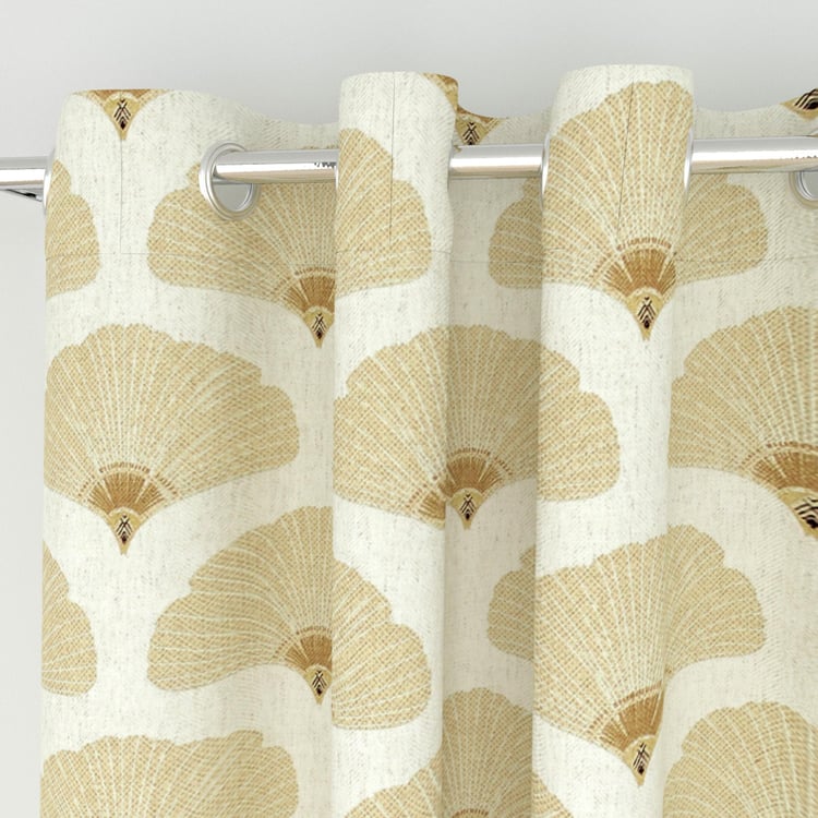 Mellow Beige Printed Cotton Door Curtain - 110x270cm