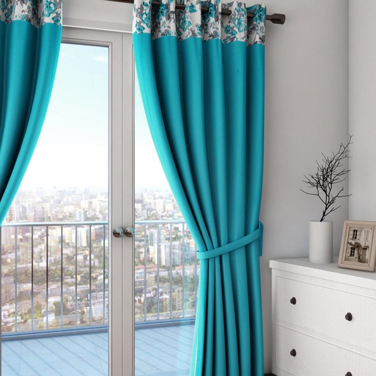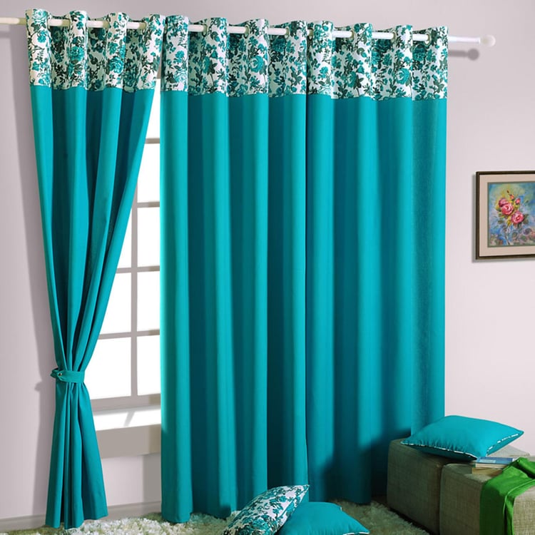 SWAYAM Printed Detail Semi-Blackout Long Door Curtain- 137 X 274 cm